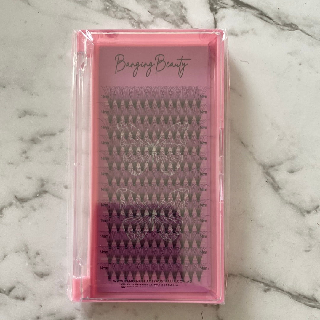 These lashes are ultra matte black with a flat base. 14D 0.5 have super fine fibres making your Mega/Russian volume sets dense and full with minimal effort.